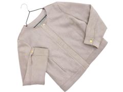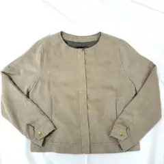 【美品】VIS ビス ノーカラージャケット レースデザイン Mベージュ【413】