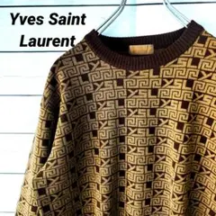Yves Saint Laurent サンローラン YSL刺繍 Vネックニット