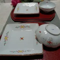 4客 たち吉 赤絵 小鉢揃 煮物鉢 深皿 とんすい 和食器 色絵 取り皿 小皿