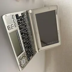 CASIO製のピンクの電子辞書、QWERTYキーボードと液晶ディスプレイを搭載。