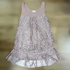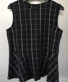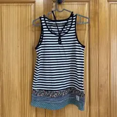 ホワイトとブルーの花柄デザインのノースリーブチュニック。