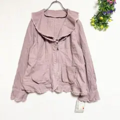 フェルゥ デニムジャケット Gジャン フリル ノーカラー 大人可愛い 薄手 M