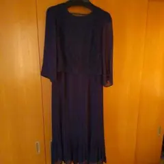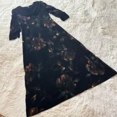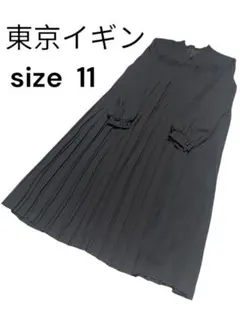 東京イギン ワンピース 七分袖 ロング丈 フリル襟 きれいめ 上品 ブラック M