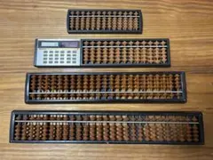 プラスチック製のブラウンのそろばん、長さ約33cmで計算に便利。