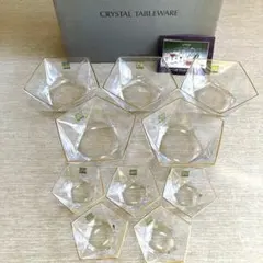 【新品未使用】HOYA・クリスタル フラワー レリーフ皿 皿立て付