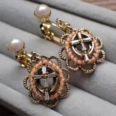 joujou 希少 ピンク✖️ミントグリーンフラワー イアリング