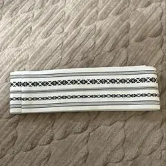 紺色の花柄デザインの角帯、縦ストライプが特徴。