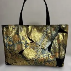エスニック模様のオレンジと黒のトートバッグ。ハンドメイド品です。少し大きめサイズです。