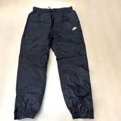 Nike製のダークグレーのピステパンツ、ネオンイエローとレッドのアクセント、サイドジッパー付きで機能的。