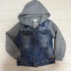 ライトブルーのデニムジャケットで、前面ボタン開閉とポケット付きのデザイン。