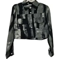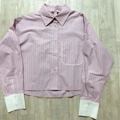 軽やかなポリエステル素材のピンクのクロップドシャツ。