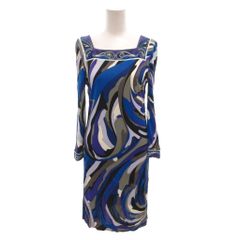 EMILIO PUCCI エミリオプッチ 幾何学柄 ワンピース 七分袖 ブルー