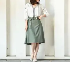 【AT】タグ付き 花柄 フレアスカート(L)タック入り ひざ丈 大きめ 日本製