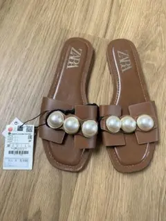 ZARA 新品ブラウン フラットサンダル ヒール3cm
