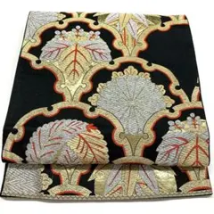 京袋帯 雪輪取り 波 片輪車 花柄 茶色 若草色 朱色 黒 絹 訪問着 188