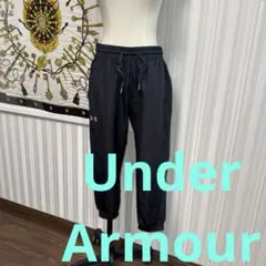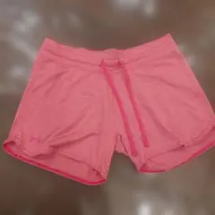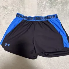 ネイビーのUnder Armourショートパンツ、サイドにグレーのストライプが特徴。