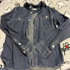 ランドリーのデニムロングシャツです。使用感あります。スレてできた若干の色アセ(色落ち)あります。シワになりやすいです。