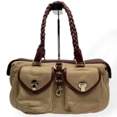 SAZABYサザビー レザー&シャギーファブリック ファー ハンドバッグ