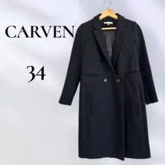 CARVEN カルヴェン ロングコート ダッフル ノーカラー ネイビー メルトン