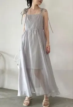 肩のリボンデザインがポイントのティアードロングワンピース。