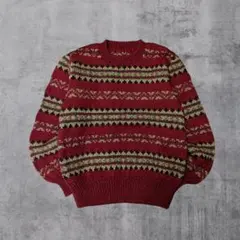 イタリア製 タートルネックニット 総柄 XL コットン/ウール短丈セーター