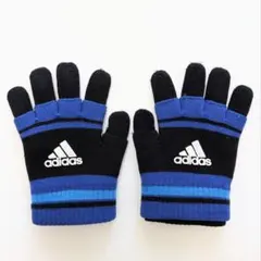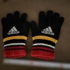 adidasのブラウンのストライプ手袋、キッズサイズで暖かさを提供。