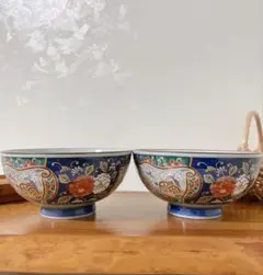 【有田焼】喜峰 飯椀 4客セット 瑠璃 金彩 竹文様 ご飯茶碗