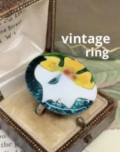 三角形のトップに水色のストーンが施されたゴールドリング。