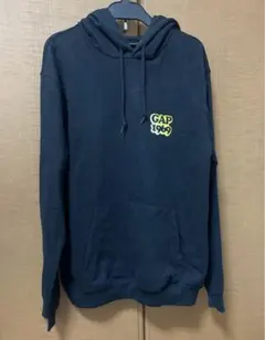フード付きのホワイトパーカー、GAPのLサイズ、ロゴデザイン。