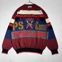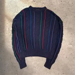TOROY ヴィンテージ 肉厚 グリーン ベージュ ボーダーストライプ ニット