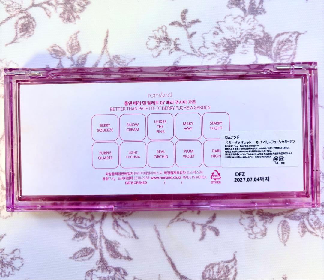 ロムアンド ベターザンアイシャドウパレット 07 ベリーフューシャガーデン