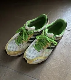 軽量で通気性に優れたターコイズのランニングシューズ。