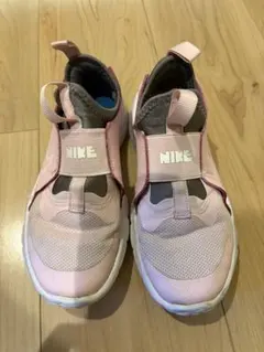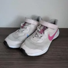 Nikeのブラックとピンクのスニーカー、ラバーソールで耐久性あり。