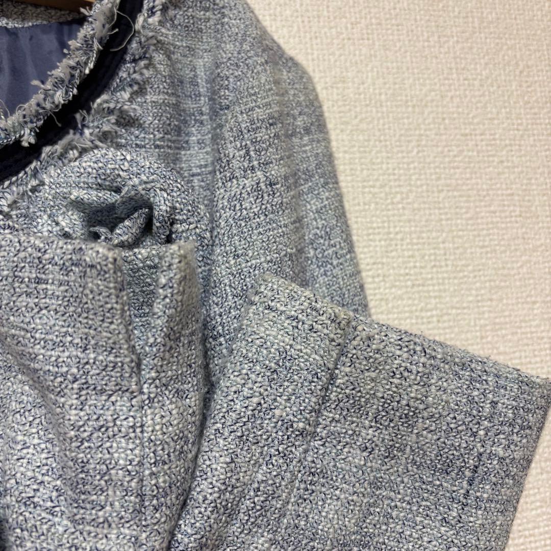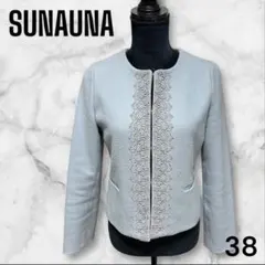 sunauna コサージュ付き ツイードジャケット ノーカラージャケット 38