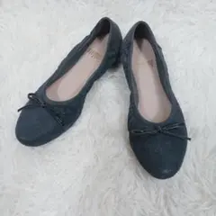 HIMIKO 卑弥呼 スクエアバックル フラットパンプス ブラック 24.5