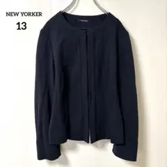 NEWYORKER ニューヨーカー ノーカラー ジャケット ベージュ 15 大きいサイズ