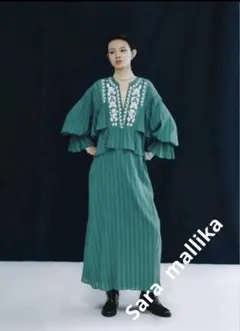 デコルテに沿った首元のカットとキーネックデザインが首を長く美しく見せます。裾部分には切り替え