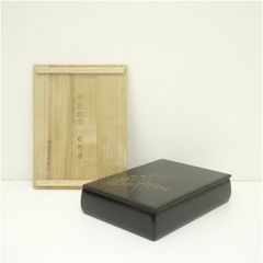 《輪島塗》黒色漆器 文箱 金松模様 木箱付き 福久勝利作