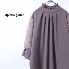 Apresjour 肩あきフリルブラウス ベージュ 花柄 五分袖