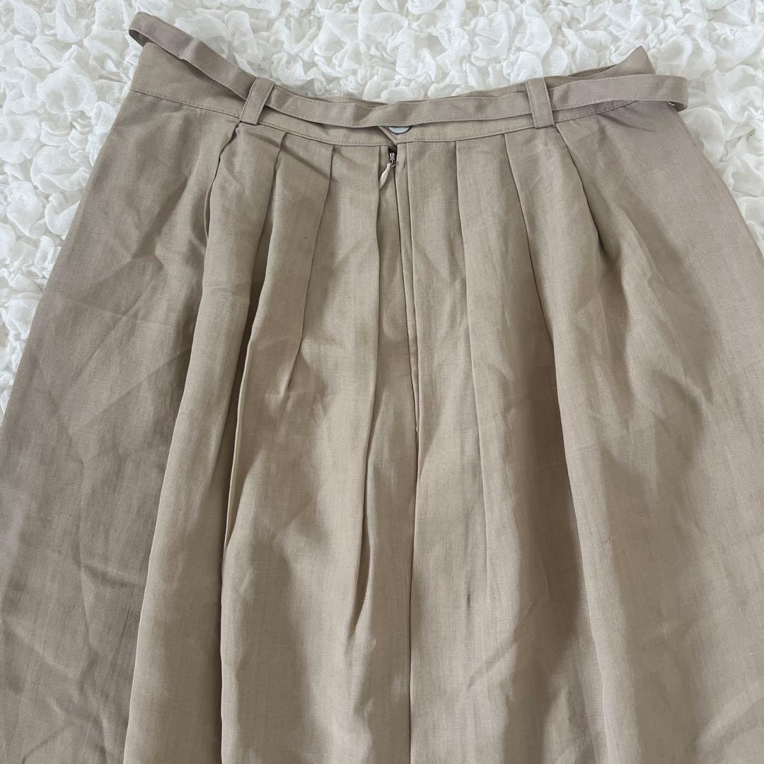 ロイスクレヨン リネン混 ロングフレアスカート タック ベージュ M 新品タグ付