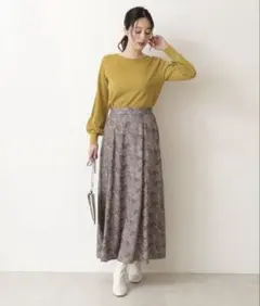 ナチュラルビューティーベーシック ロングスカート ホワイトドットフレアスカート
