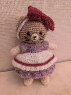 猫耳帽子をかぶった、キラキラねこちゃんのあみぐるみです^._.^