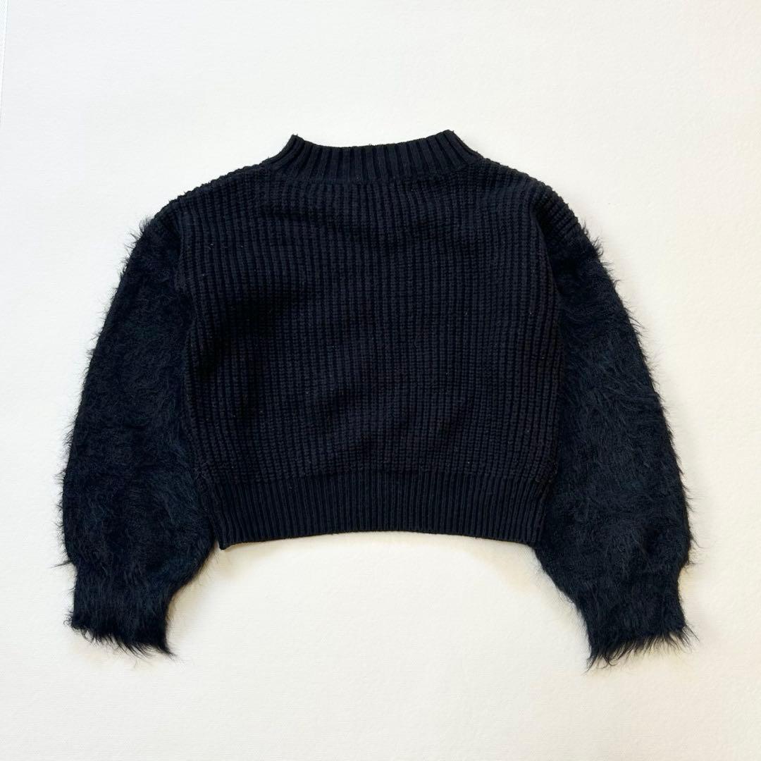 袖がふわふわのシャギー素材に切り替わった、可愛いデザインのニットです。