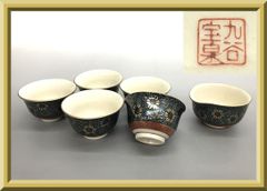 (専用)昭和レトロ梅と菊の花柄の和風湯呑み 和歌つき 10個セット 新品 九谷焼