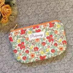 リバティラミネート生地とフェイクレザーを合わせてペタンコポーチを作りました。
