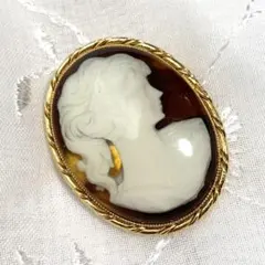 ヴィンテージブローチ カメオ シェル 貴婦人テラコッタ アンティークゴールド②