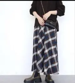 アメリカンホリック プリーツ ロングスカート チェック柄【M】ウール混 c728