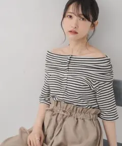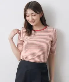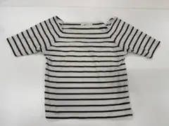 ボーダー柄のストライプデザイン、五分袖のカットソー。