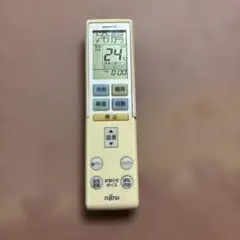 Fujitsu製エアコン用リモコン、冷房・暖房・除湿機能搭載、液晶ディスプレイ付き。