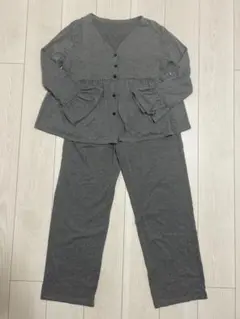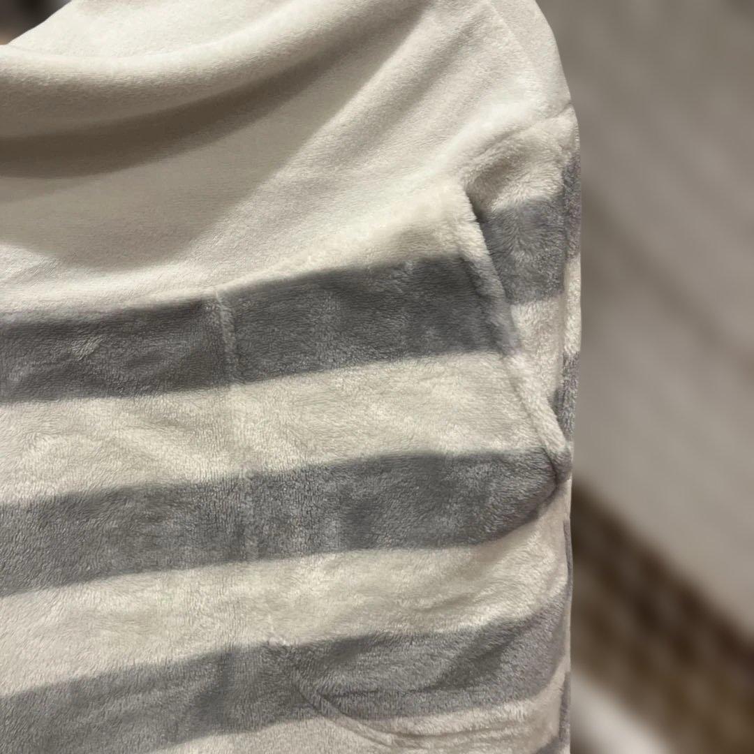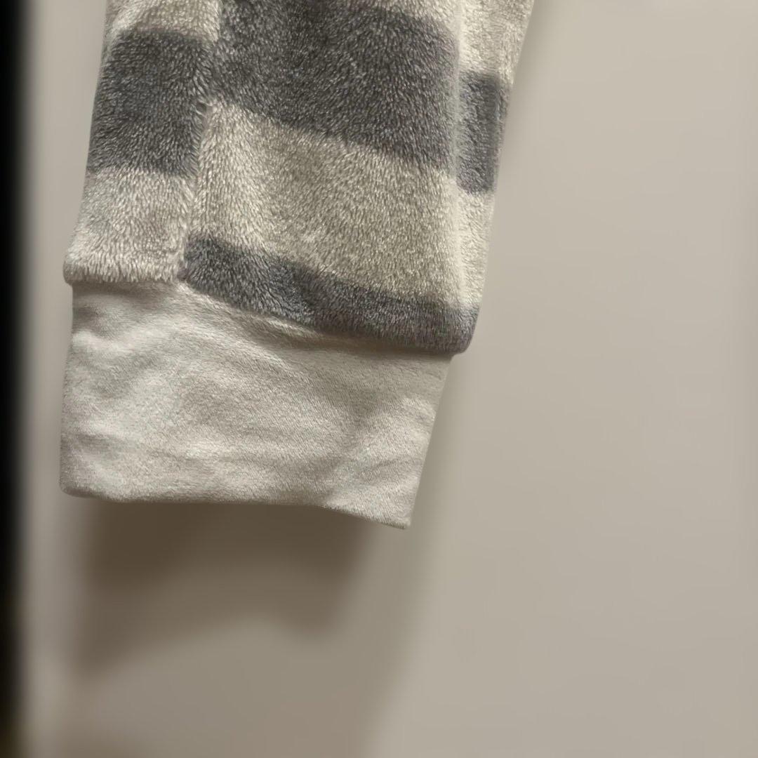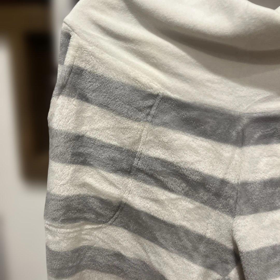 ホワイトとグレーのストライプデザイン、柔らかい生地のリラックスフィットパジャマ。